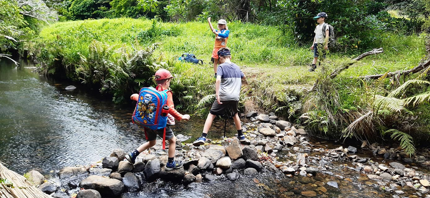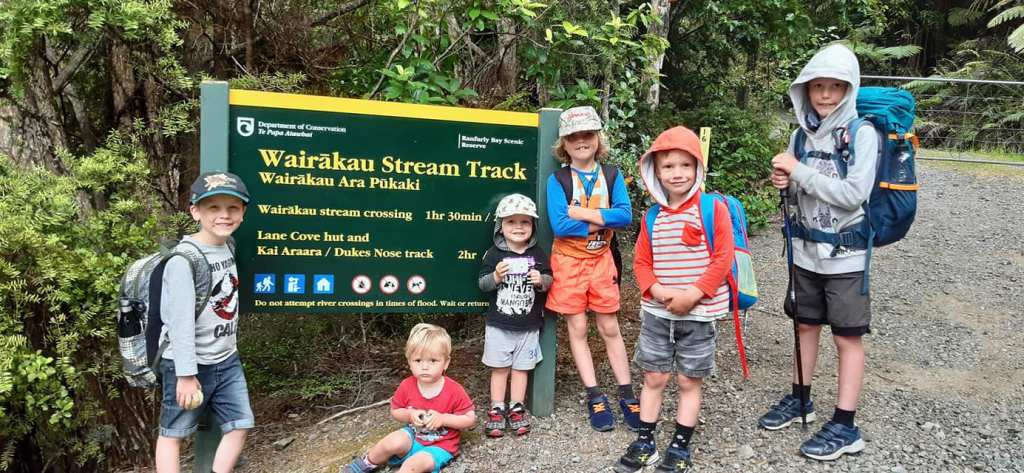 Access: Follow the Wairakau Stream track, which is 5.6km each way to Lane Cove hut. The sign says it takes 2 hours but we took just under 3 hours each way. My 3 year old who is tiny (the size of a 1 year old) refused to be carried so walked most of the way. Could definitely be done quicker depending on the ages of children etc. I thought the track was a really good one for kids. It was safe, no issues about kids going off the edges etc like I a few other tracks we have done before. There are two main river crossing (more stream than river). These were so fun for the kids as they weren’t too big or scary and there were plenty off rocks to step over. There are also quite a few obstacles for the kids to get over during the track like a few small muddy/rocky areas, some fallen branches, quite a few tree roots that need to be climbed over. It all made the hike more exciting and more of an adventure. Also worth mentioning you can boat into the hut and I have heard quite a few families have got their gear boated into the hut and then walked in to make it a bit easier.