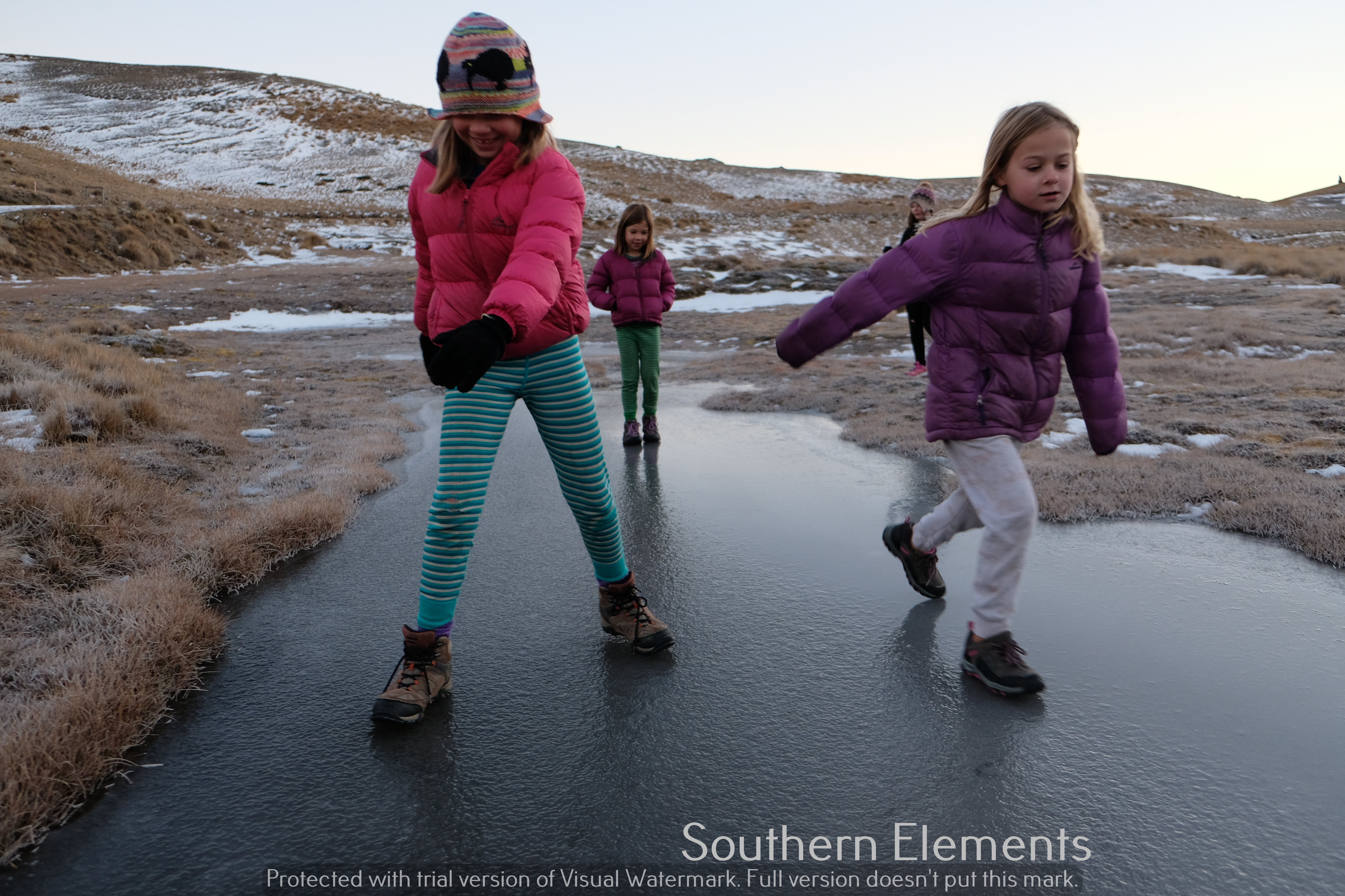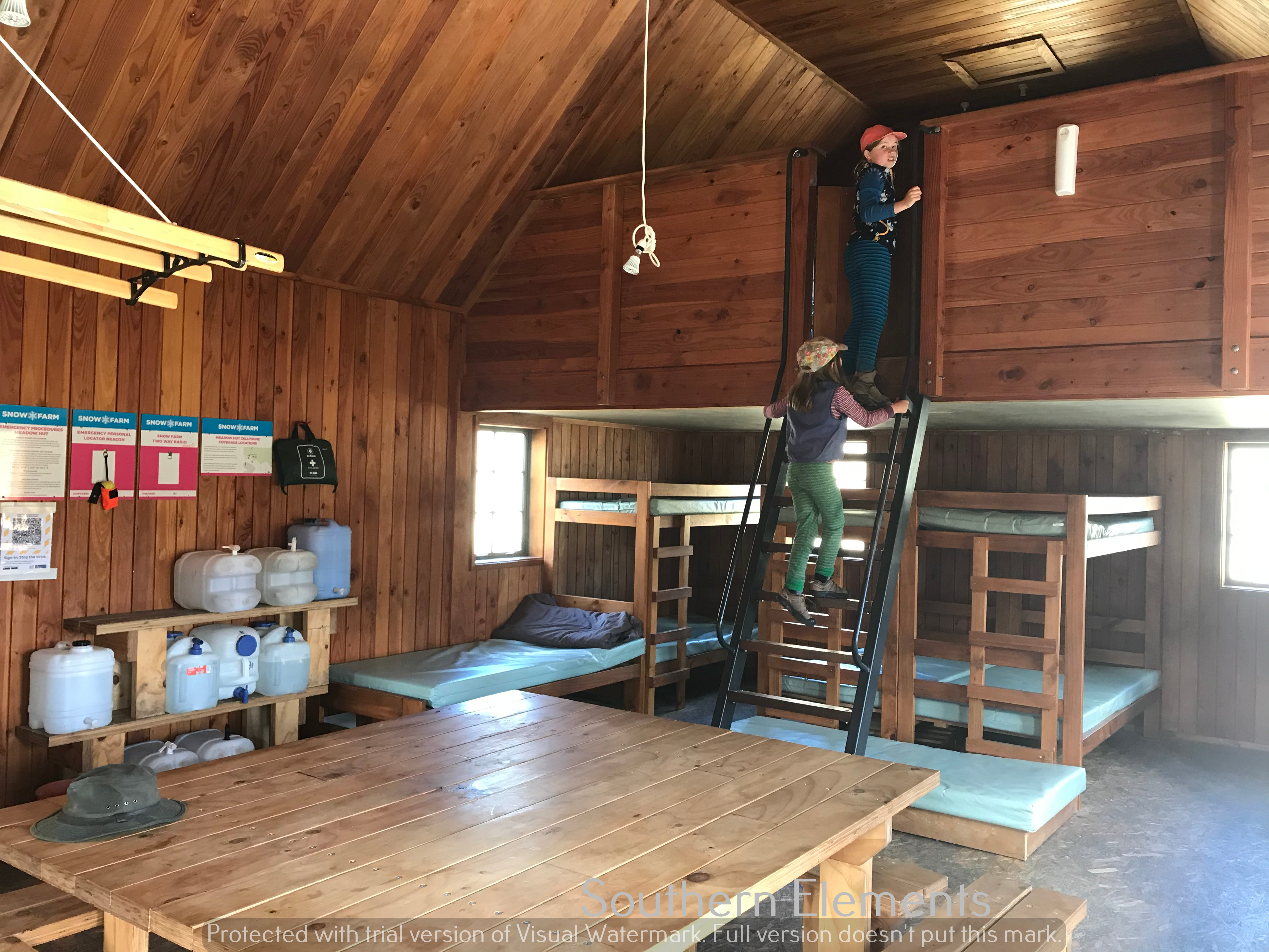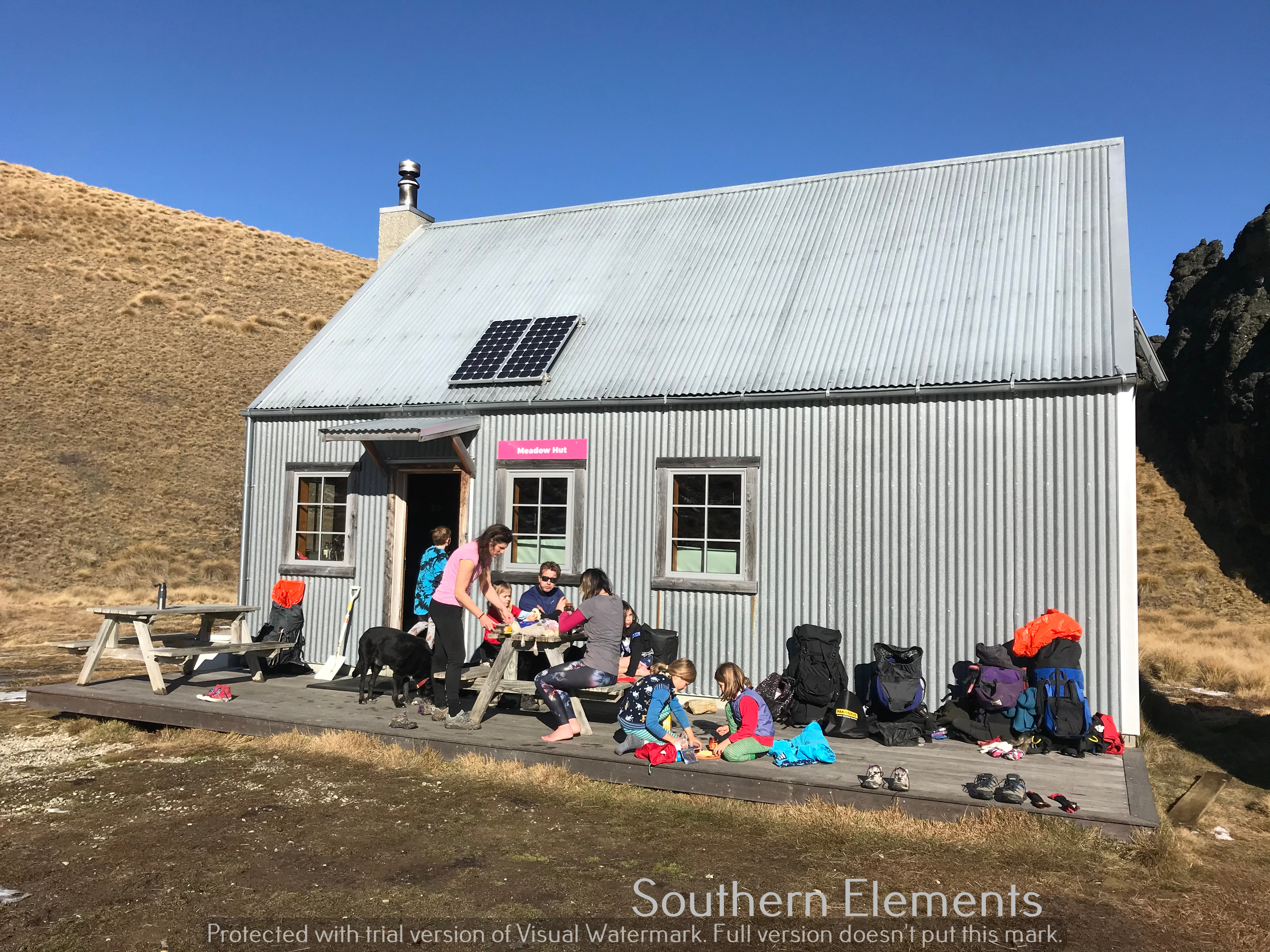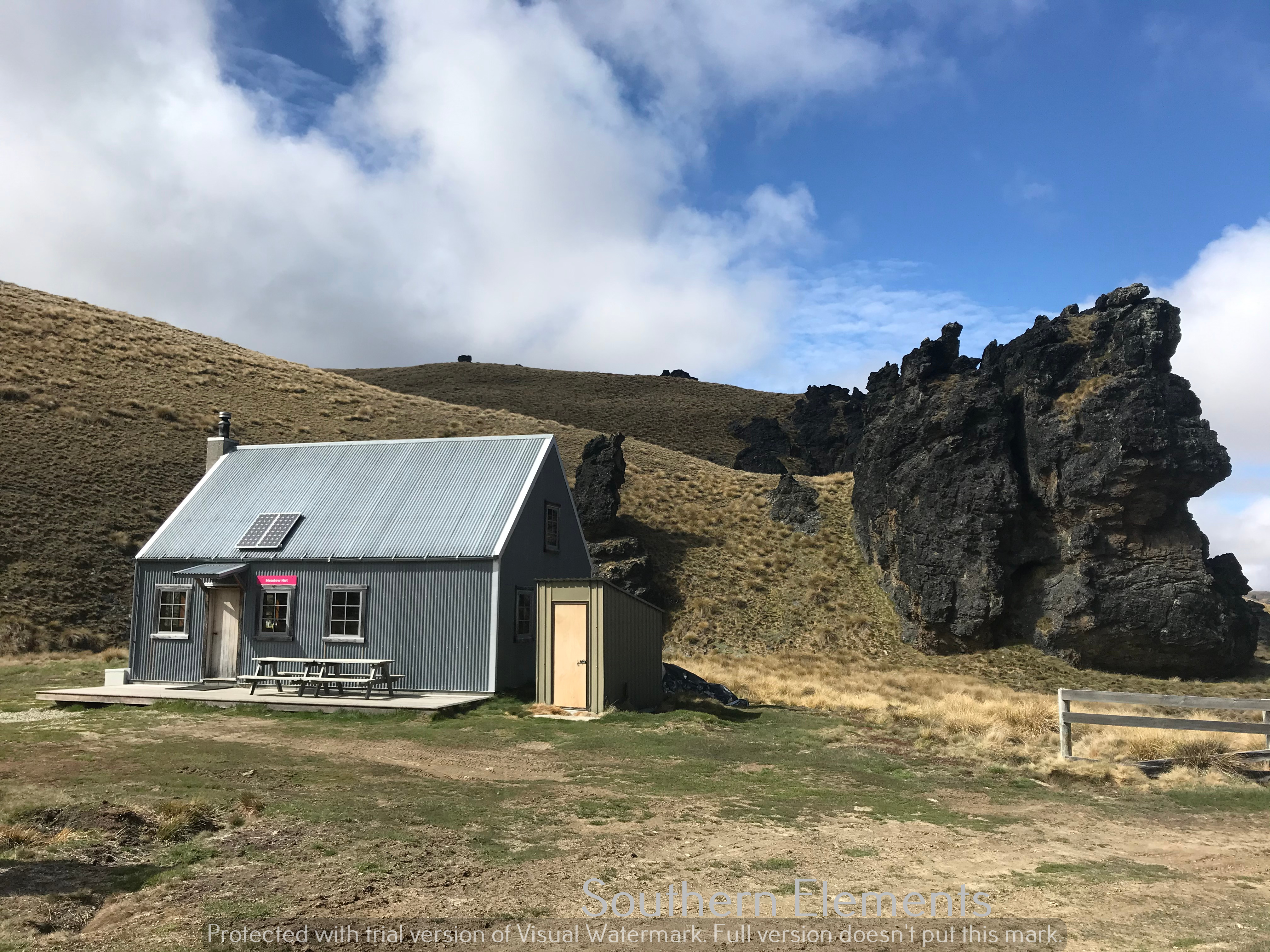 A well-equipped 20 bunk hut. See photo below – some mattresses on floor of mezzanine which has a door (parent peace-of-mind). Cookers, gas, stoves, equipment, firewood, water, and solar lighting provided. Temperature was -5C outside when I checked in the morning but was still fine inside the hut. The hut is nestled in quite a sheltered spot with the stream running behind it – great for splashing in summer or skating on in winter when it freezes. Across the stream are some awesome rock outcrops to explore, or head further up the hills for views of the surrounding area.