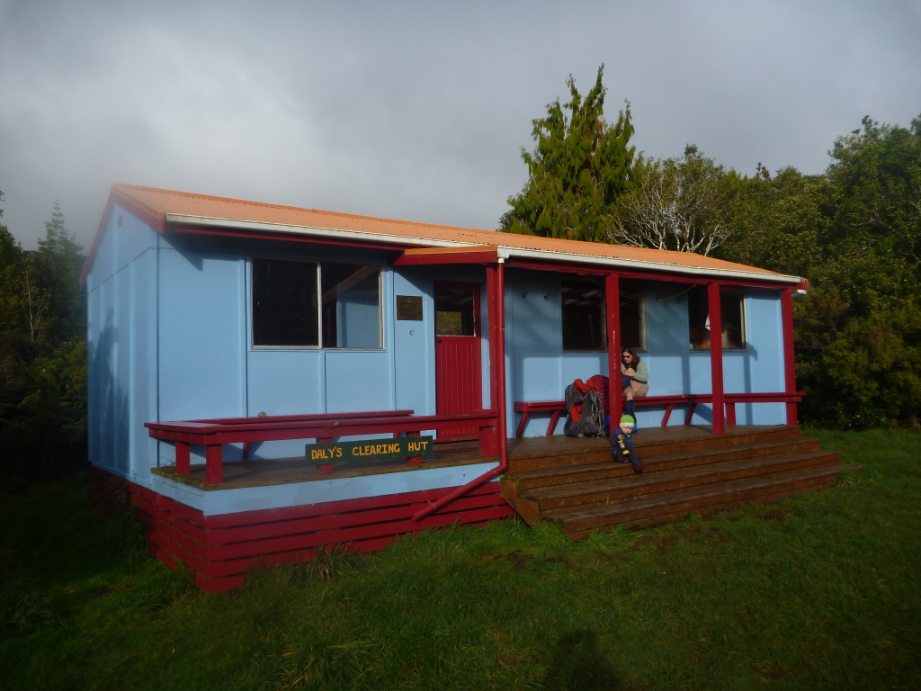 Access: There are a few different options to reach Daly’s Clearing Hut. We walked in from Franklin Road along the Dean track which is about five kilometres, and took us just under two hours carrying our one and a half year old. The first part of the walk was up through farmland, which is not usually very exciting, but this time the track took us right through a small paddock with lots of dairy cows eyeing us up. After twenty minutes walking we reached the bushline. The track turns sharply as soon as you enter the bush, but unfortunately, we missed the turnoff and had to backtrack after following what turned out to be an animal track. The rest of the track was easy to follow, and although there are two track junctions these are both well marked and easy to navigate.