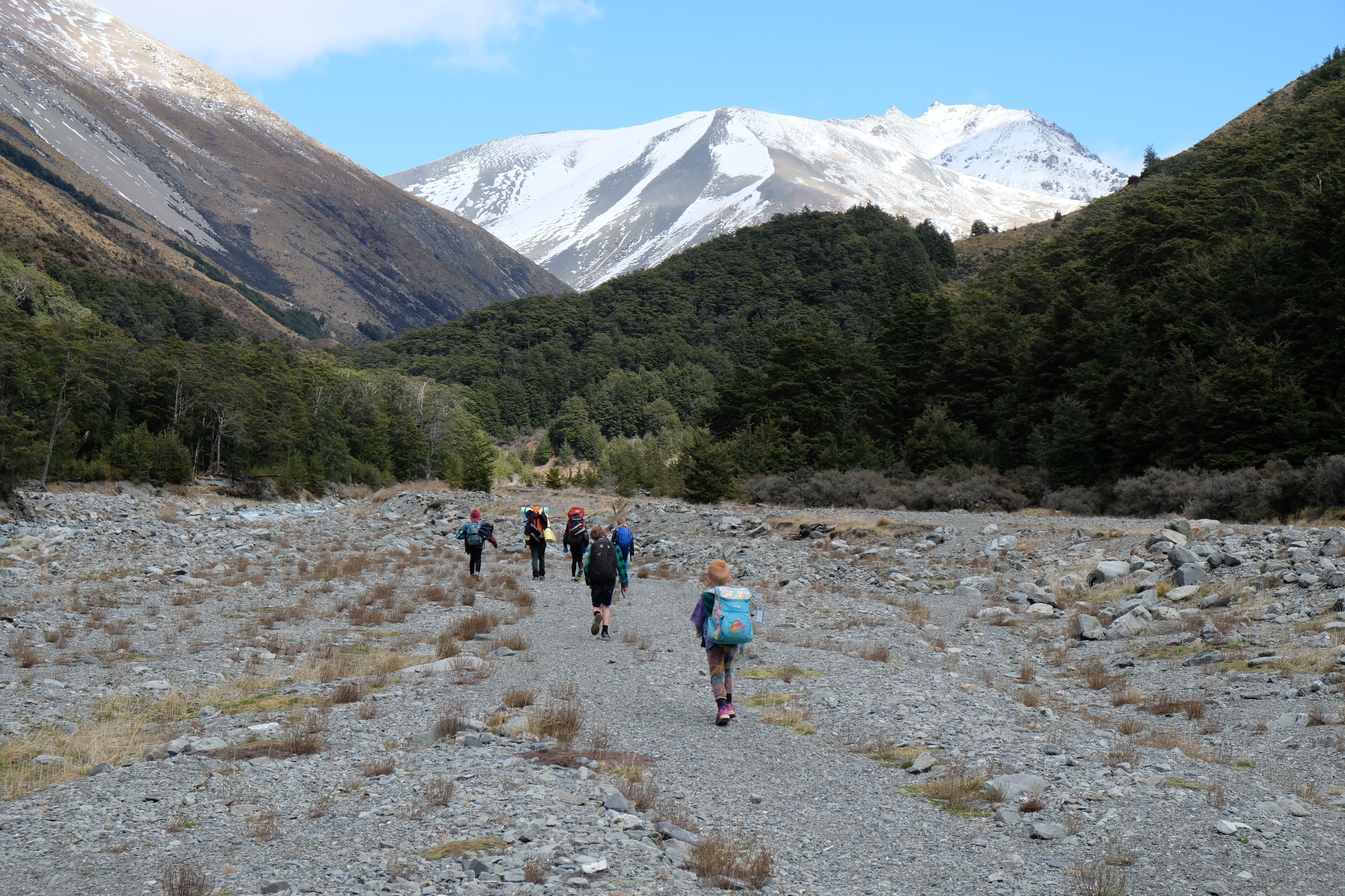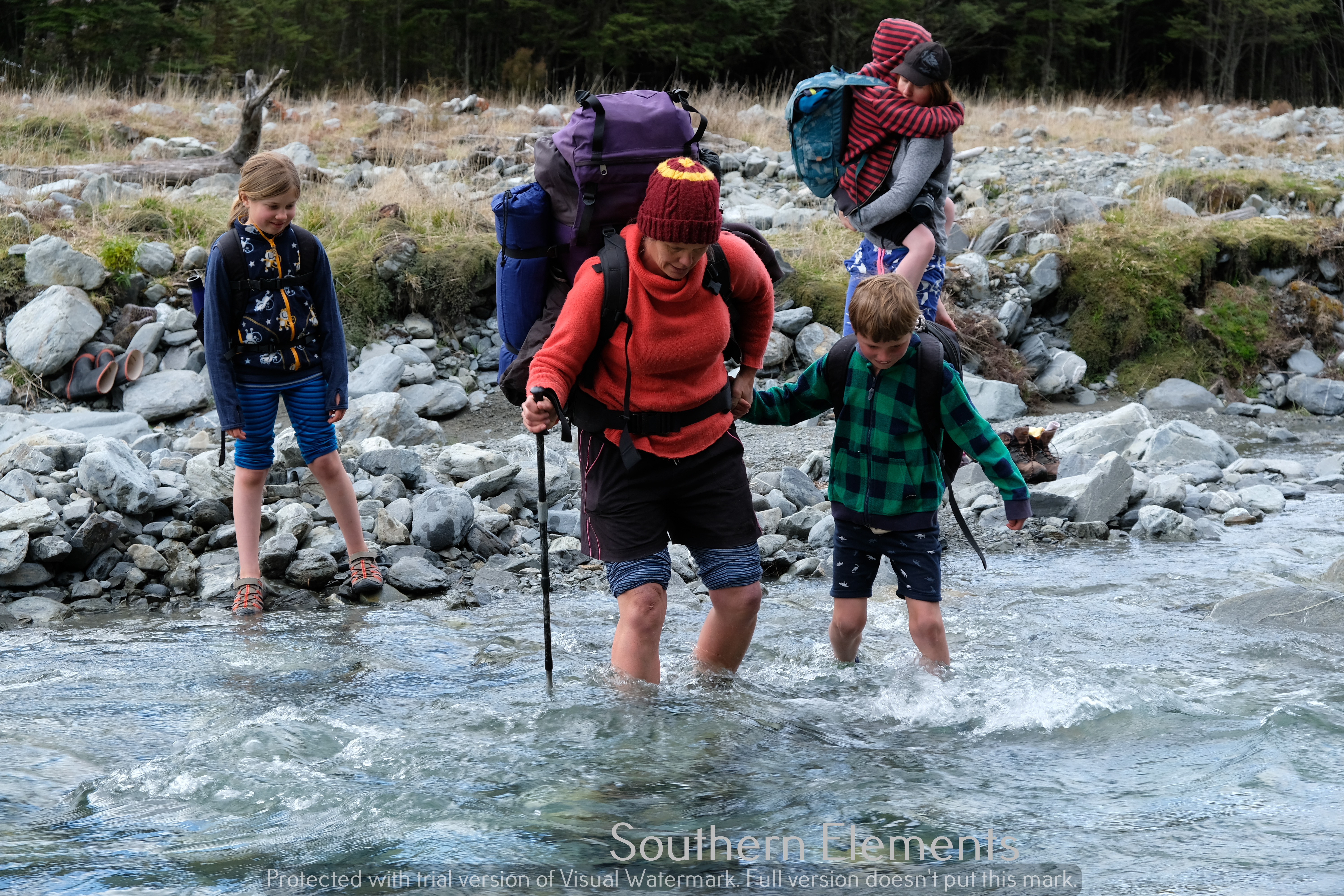 Access: This is a classic Kiwi tramping – river bed, bush, scree, mud, streams. Plus two river crossings that can easily rise. Group aged 5-11 years plus Mums took 5 hours to walk in, including changing shoes after first river and lunch + snack stops. Only took 3.5hours out the following day which only included one snack stop (plus lots of snacks on the move, there’s a story 😉 ). DoC time is 3-4hrs so this was impressive going for the 5 year old 🙂