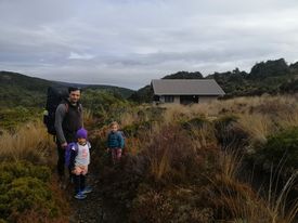 We had 2 adults, and 3 children – aged 17 months (carried almost entire way), nearly 4 year old, and 5.5 year old. It took us approx 3 hours on the way to the hut, including a couple of stops. A bit longer on the way back to carpark as more of track is uphill. Given the area (an actual volcano!!!), the track, especially for the first half is not a beautiful graded track – it is poled, and obvious to follow, but there are lava rocks that are tricky to navigate for little legs – but super interesting!